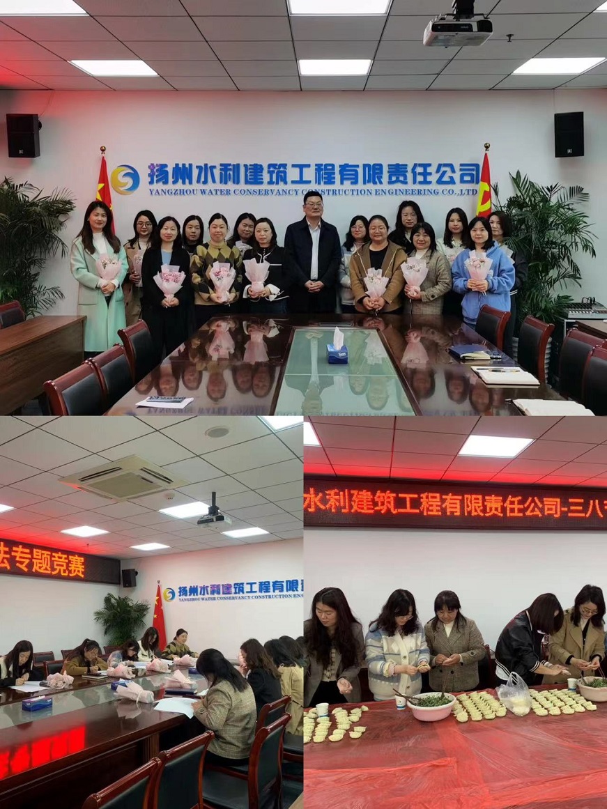 【概要描述】春風(fēng)和煦,陽光微醺,又是一年春花爛漫時。為豐富女職工的精神文化生活,激發(fā)大家開拓進(jìn)取、干事創(chuàng)業(yè)的工作熱情,增強(qiáng)女職工集體凝聚力和戰(zhàn)斗力,彰顯新時代女職工風(fēng)彩,3月8日,揚州水利建筑工程有限責(zé)任公司工會組織開展以“建功新時代,奮躍她力量”為主題的系列慶祝活動。 活動在工會主席的致辭中拉開帷幕。他充分肯定了大家的工作,要求大家要以習(xí)近平新時代中國特色社會主義思想為指導(dǎo),立足崗位,開拓創(chuàng)新,大力弘揚“自尊、自信、自立、自強(qiáng)”的新時代新女性精神,繼續(xù)在揚水建的熱土上揮灑青春與汗水,貢獻(xiàn)智慧和力量,全面展示女職工勤勞勇敢、團(tuán)結(jié)奮進(jìn)、勇于擔(dān)當(dāng)、昂揚向上的新風(fēng)采,并向全體女職工致以節(jié)日的誠摯問候和衷心祝福! 工會組織大家開展了婦女權(quán)益保障法專題知識競賽,用普法宣傳提升法律意識,增強(qiáng)職工守法用法意識、保護(hù)自身合法權(quán)益,并運用法律所體現(xiàn)的法治思維、法治理念破解工作難題,推動日常工作的開展。 快樂包餃子比賽將活動推向了高潮,大家各自發(fā)揮所長,齊心協(xié)力、配合默契,現(xiàn)場氣氛溫馨熱烈,一個個小巧玲瓏的餃子不費吹灰之力就呈現(xiàn)在了眼前,一盤盤熱氣騰騰的餃子把家的味道融進(jìn)了揚水建這個大家庭中。? 此次活動的開展,既豐富了女職工的文體生活,營造了濃厚的節(jié)日氛圍,同時也展示出新時代女職工敬業(yè)奉獻(xiàn)、樂觀向上的良好精神風(fēng)貌,彰顯了巾幗之美。大家紛紛表示:將勠力同心、眾志成城、扎實工作、乘勢而上,為實現(xiàn)公司更好很快發(fā)展貢獻(xiàn)巾幗力量!
