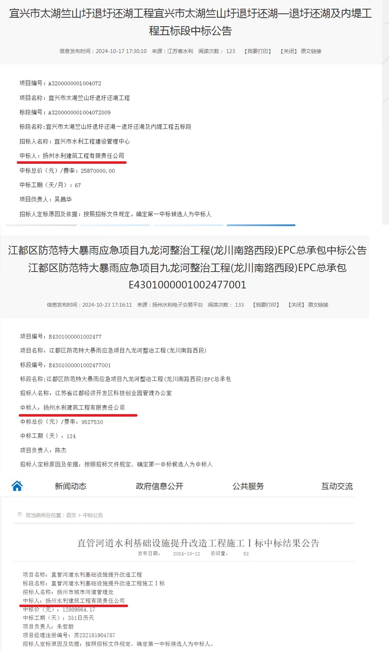【概要描述】近日,揚州水利建筑工程有限責任公司市場開拓捷報頻傳,公司相繼中標直管河道水利基礎設施提升改造工程施工Ⅰ標、宜興市太湖竺山圩退圩還湖一退圩還湖及內(nèi)堤工程五標段、江都區(qū)防范特大暴雨應急項目九龍河整治工程(龍川南路西段),中標價分別為1280.98萬元、2587萬元和952.75萬元,為公司高質(zhì)量發(fā)展再添新動力?! ≈惫芎拥浪A設施提升改造工程施工Ⅰ標作為域內(nèi)項目,針對市內(nèi)直管河道存在的河道淤積、護岸損壞以及閘(泵)站水泵及電氣設備故障率逐年攀升存在安全隱患等問題,對淤積河道進行清淤、對河坡險工段進行加固處理。建成后對改善河道引排能力,改善水環(huán)境和生態(tài)環(huán)境,促進經(jīng)濟可持續(xù)發(fā)展?具有重大意義?! ∫伺d市太湖竺山圩退圩還湖一退圩還湖及內(nèi)堤工程五標段是太湖水環(huán)境綜合治理項目,著力于進行生態(tài)修復,做好生態(tài)經(jīng)濟文章。工程建成后對減少竺山圩區(qū)域農(nóng)業(yè)面源污染、消除內(nèi)源污染、恢復太湖水面積等方面將起到十分積極的作用?! 〗紖^(qū)九龍河整治工程聚焦龍川南路西片九龍河整治,建設內(nèi)容主要為擴大片區(qū)水面積,增加片區(qū)排水出路,縮短雨水管網(wǎng)排水路徑等,項目完工后對完善區(qū)域河網(wǎng)建設具有重要意義?! ∠乱徊?,公司將嚴格按照項目建設標準,組建優(yōu)秀管理團隊,提升履約質(zhì)效,全力打造精品工程、示范工程、標桿工程。以時不我待的緊迫感和使命感,錨定目標,凝心聚力,進一步擴大市場攻堅成效,為公司全面完成年度目標任務助力。